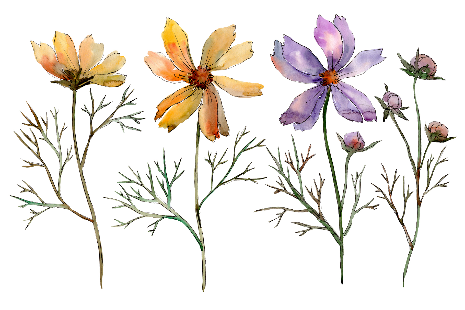 Your artworks which is related to watercolor, flower, floral the watercolor cosmos flower psd file is easy to modify in adobe photoshop. Ideal material for diy, wedding invitations, greeting cards, quotes, blogs, posters and more. Watercolor cosmos flower isolated on white background, vector format. I heard from one of my readers that cosmos grows like weeds and i was thinking to myself how beautiful it would be to just see them in the wild here in. This is a fine art print of my original watercolor painting, enjoy this in your own indoor garden wall art decor.